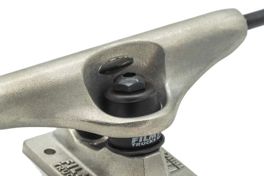 Jeremie Daclin first created Film Trucks in 2000 as a sister company to Cliché Skateboard. In 2018 Film Trucks returned as an independent truck company. The double kingpin seat ensures that you can use a standard kingpin as well as an old school hex kingpin. Film Trucks have thought of pretty much every feature you could want from a skateboard truck.