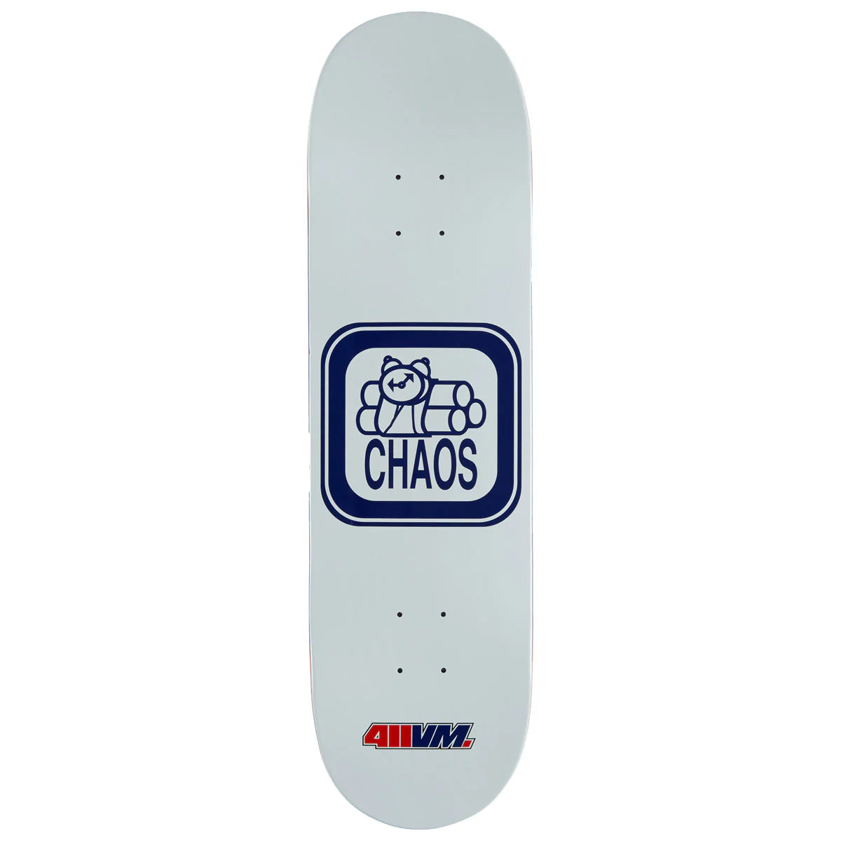 For the first time ever, the 411 Chaos logo is hitting skate decks. A tribute to the fast-paced, unpredictable energy of 411VM’s legendary "Chaos" section, this limited-edition deck features the iconic blue and white graphic on a clean white background, with a subtle 411VM logo at the tail.